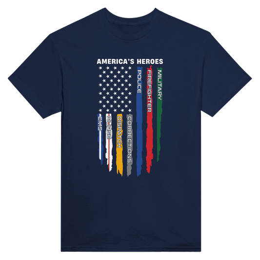 American Heroes Flag T-Shirt - Tribute to Military, Firefighters, & First Responders