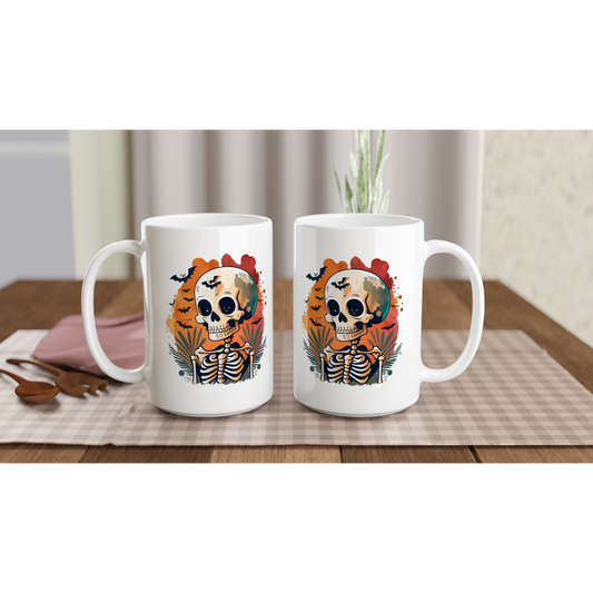 Batty Skeleton White 15oz Ceramic Mug