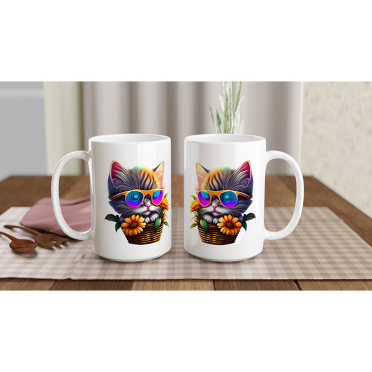 Basket Kitty White 15oz Ceramic Mug