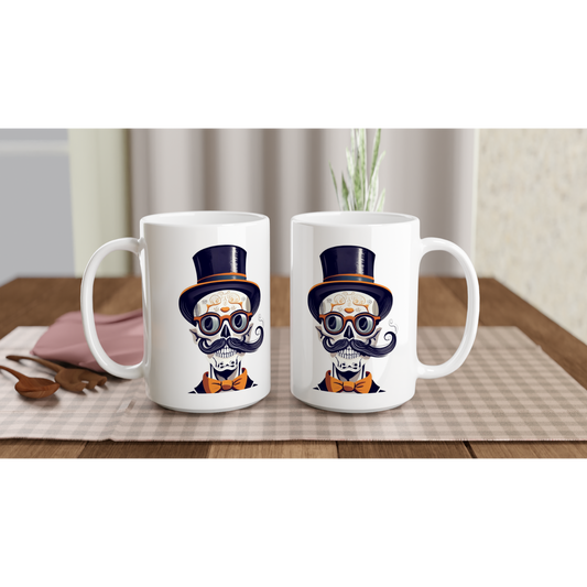 Bow Tie Skeleton White 15oz Ceramic Mug